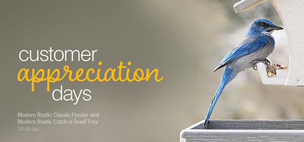 We love our customers as much as we love the birds and nature. From the photos you share to the stories you tell, you remind us every day why we do what we do. As a BIG thank you, we’re celebrating Customer Appreciation Days. It's a chance to show you some love. So stop by, stock up and save. Your support of our small business means the world to us (and the birds). Click here to shop now!